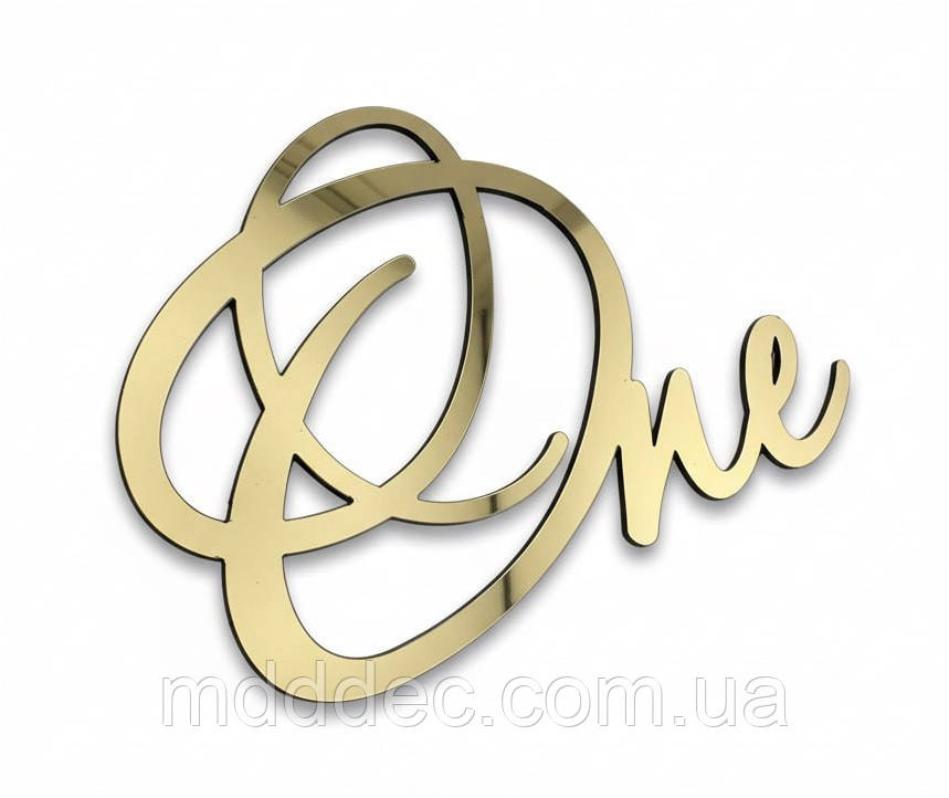 Дзеркальний бічний топер на торт One, золотий торцевий топер на бік торта пластиковий