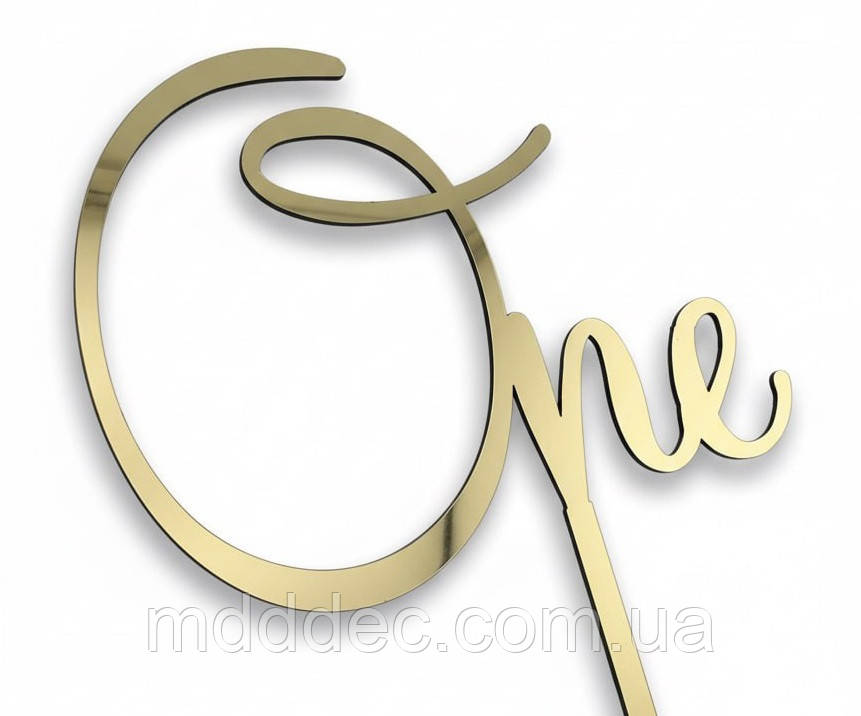 Топпер One на ніжці, дзеркальний золотий топер на верх торта